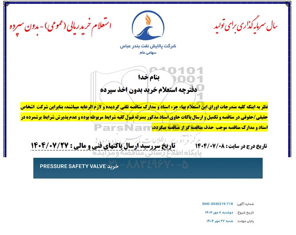 خرید PRESSURE SAFETY VALVE