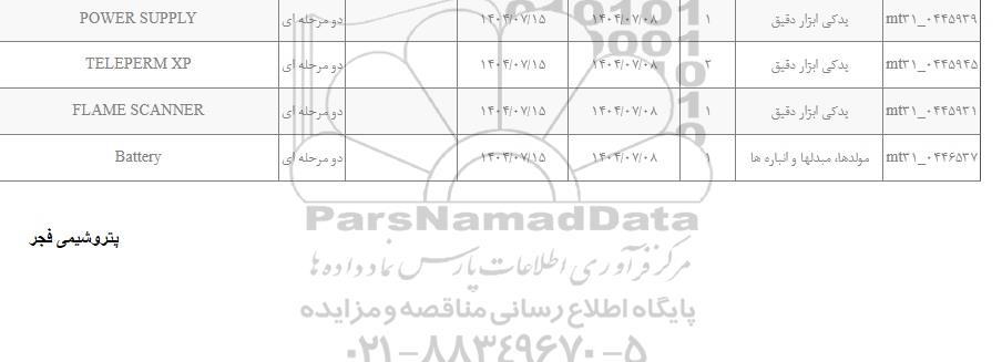 | mt31-0445939 | یدکی ابزار دقیق | 1 | 1404.7.8 | 1404.7.15 | دو مرحله ای | POWER SUPPLY |