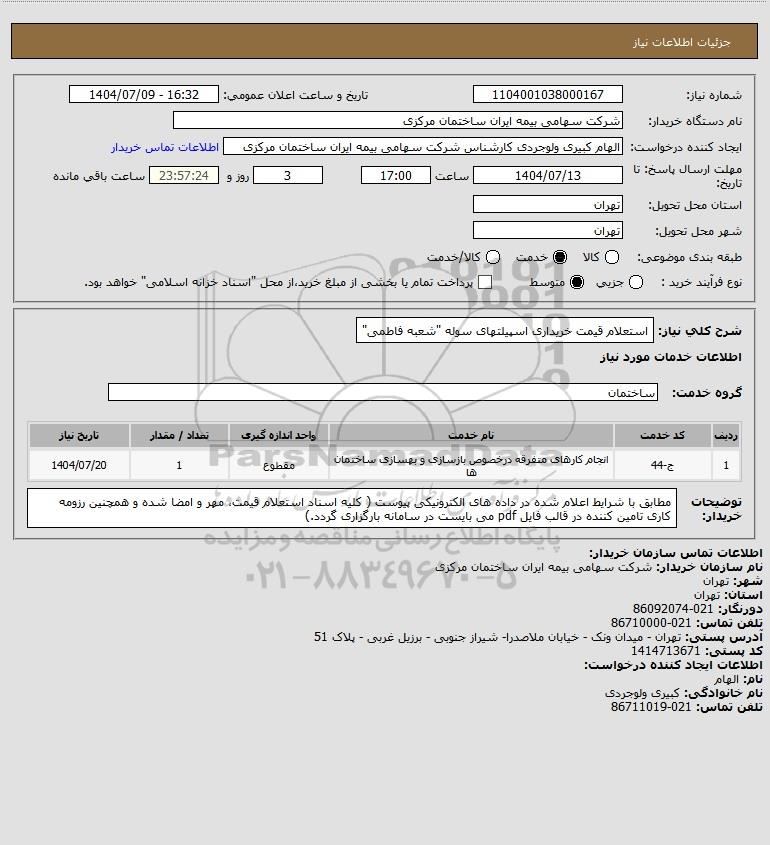 نام دستگاه خریدار:شرکت سهامی بیمه ایران ساختمان مرکزی