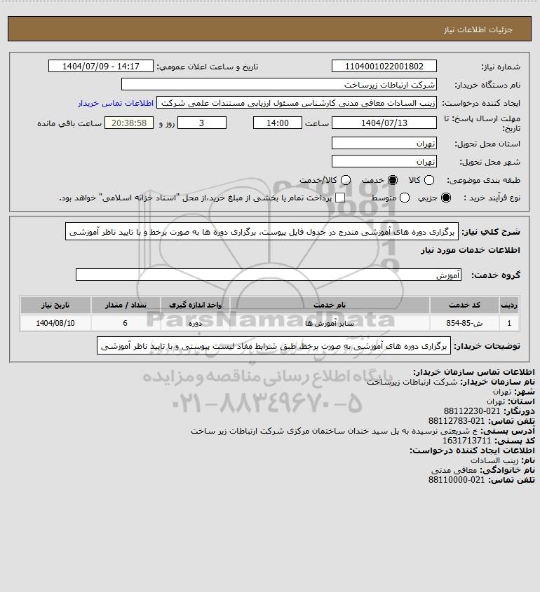 نام سازمان خریدار: شرکت ارتباطات زیرساخت