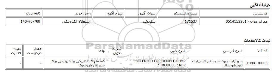 مهران دیوان - 0514152301171537سلونوئیداستعلام الکترونیکی1404/07/09