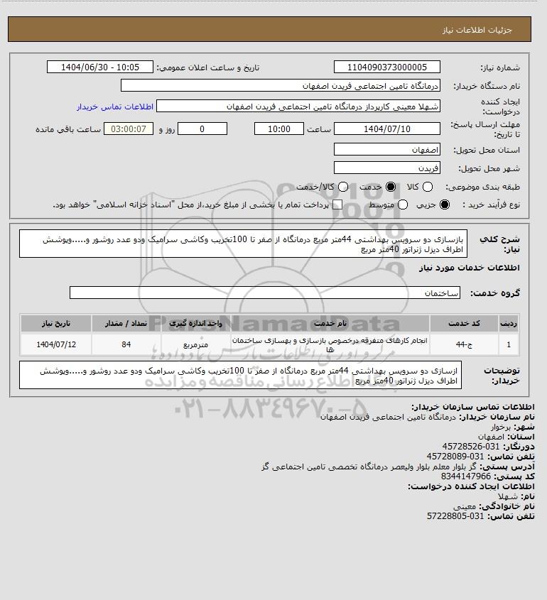 نام دستگاه خریدار:درمانگاه تامین اجتماعی فریدن اصفهان