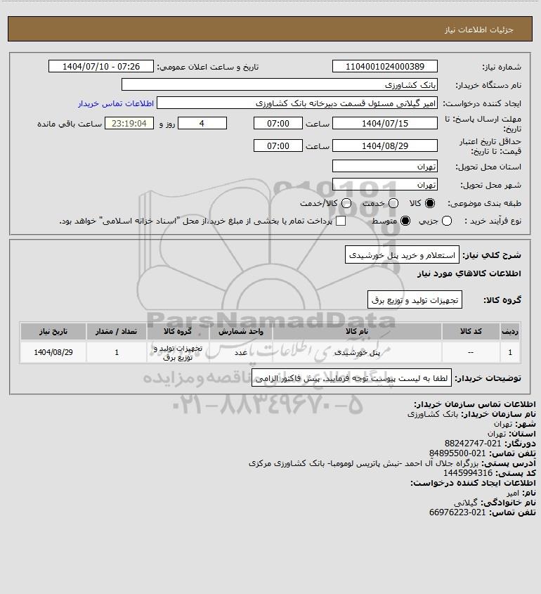 استعلام استعلام و خرید پنل خورشیدی, استعلام استعلام و خرید پنل خورشیدی