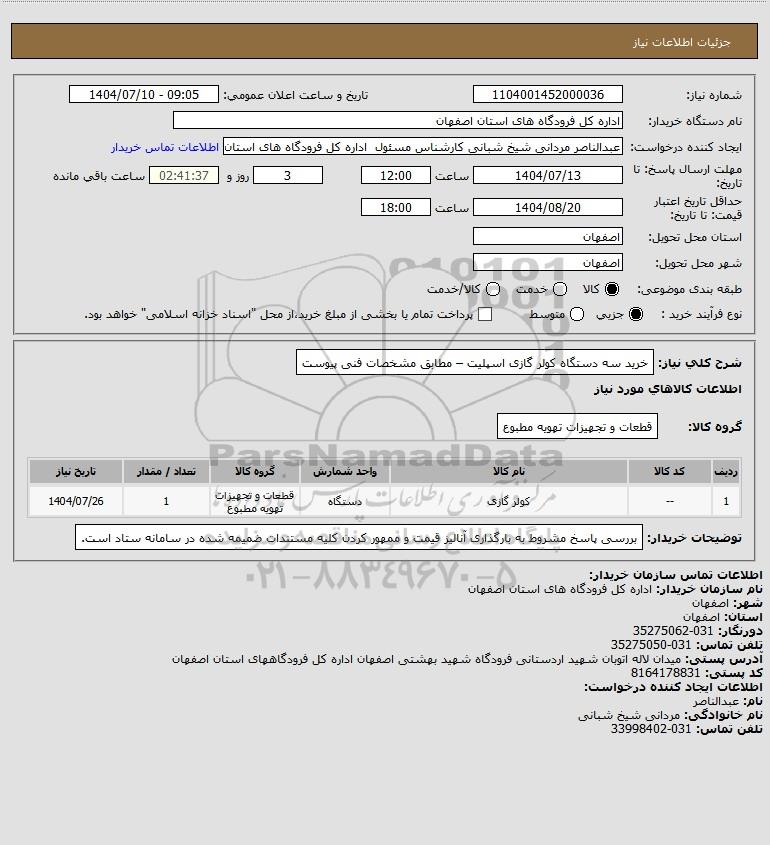 نام دستگاه خریدار:اداره کل فرودگاه های استان اصفهان