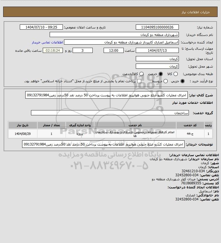 نام سازمان خریدار: شهرداری منطقه دو کرمان