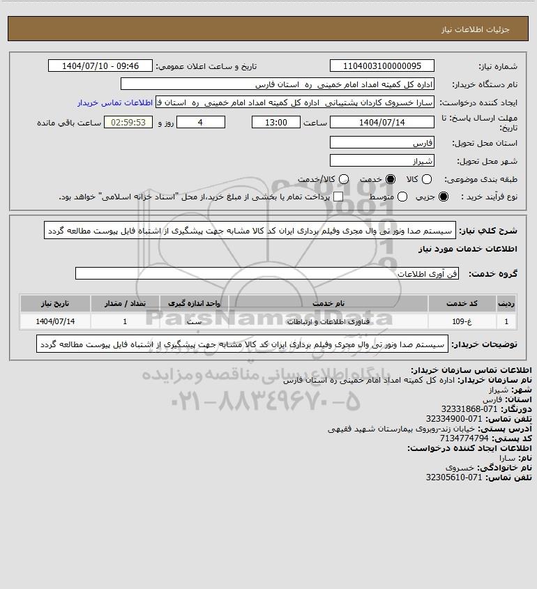 نام دستگاه خریدار:اداره کل کمیته امداد امام خمینی ره استان فارس