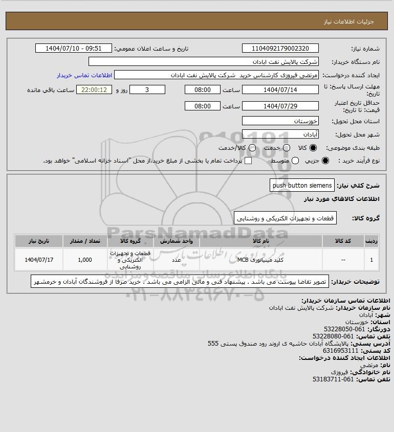 نام دستگاه خریدار:شرکت پالایش نفت ابادان