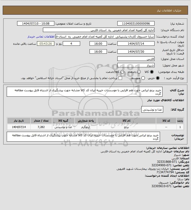 نام دستگاه خریدار:اداره کل کمیته امداد امام خمینی ره استان فارس