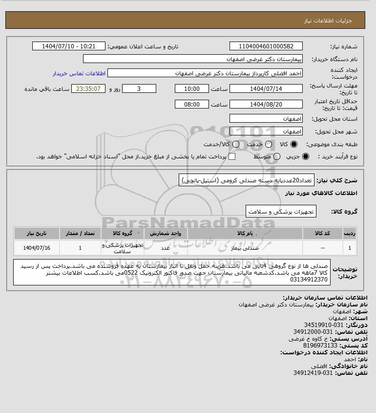 نام سازمان خریدار: بیمارستان دکتر غرضی اصفهان