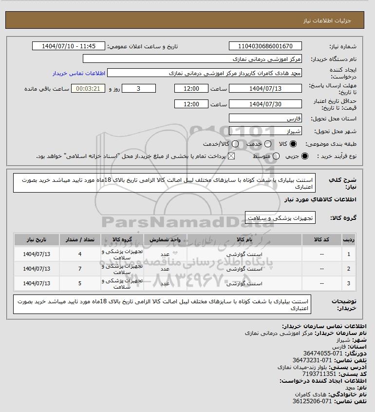 نام دستگاه خریدار:مرکز اموزشی درمانی نمازی
