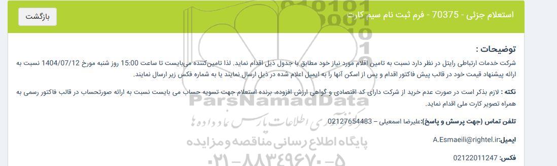 استعلام جزئی - 70375 - فرم ثبت نام سیم کارت