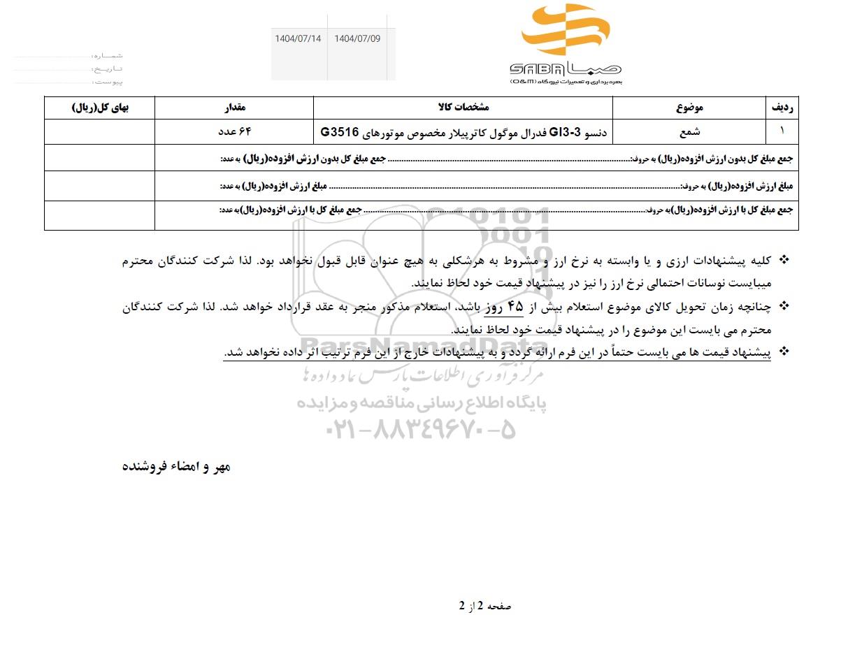| 1 | شمع | دنسو G13-3 فدرال موگول کاترپیلار مخصوص موتورهای G3516 | 64 عدد |