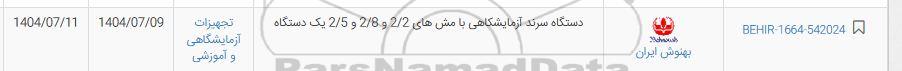 behir-1664-542024 بهنوش ایران  دستگاه سرند آزمایشگاهی با مش های 2.2 و 2.8 و 2.5 یک دستگاه  تجهیزات آزمایشگاهی و آموزشی  1404.07.09 1404.07.11