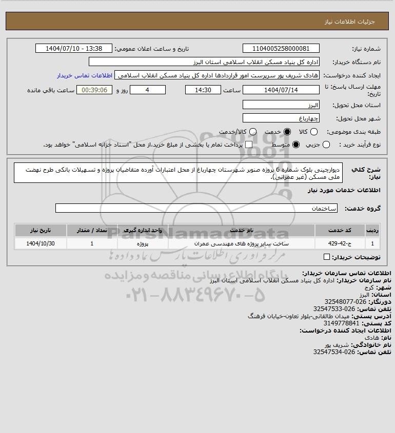نام دستگاه خریدار:اداره کل بنیاد مسکن انقلاب اسلامی استان البرز