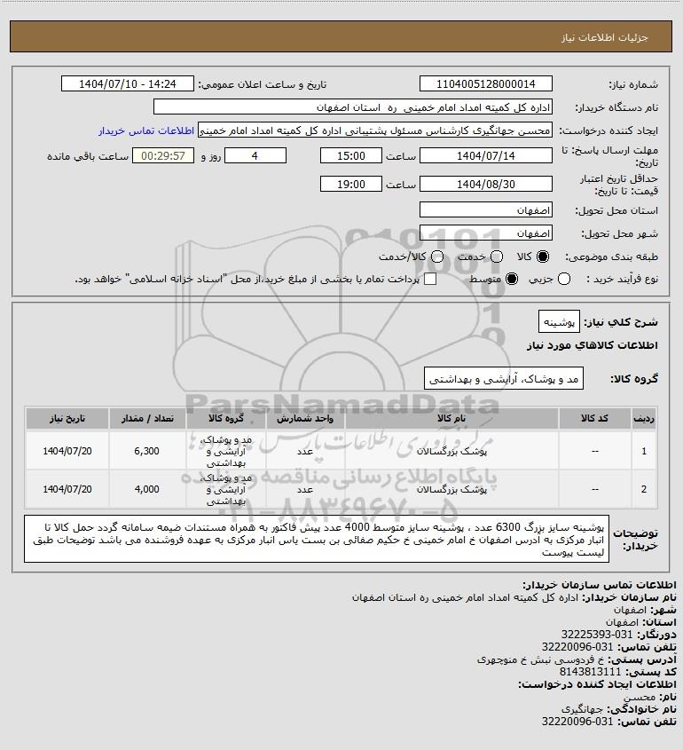 نام دستگاه خریدار:اداره کل کمیته امداد امام خمینی ره استان اصفهان
