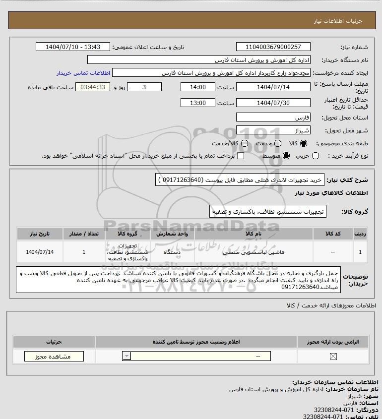 نام سازمان خریدار: اداره کل اموزش و پرورش استان فارس