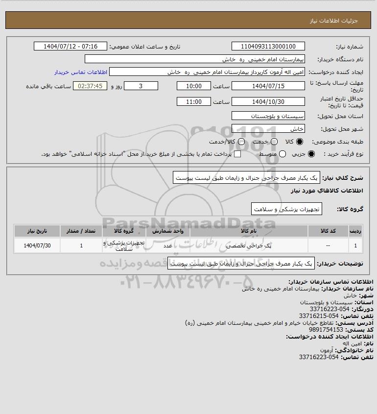 | 1 | -- | پک جراحی تخصصی | عدد | تجهیزات پزشکی و سلامت | 1 | 1404/07/30 |