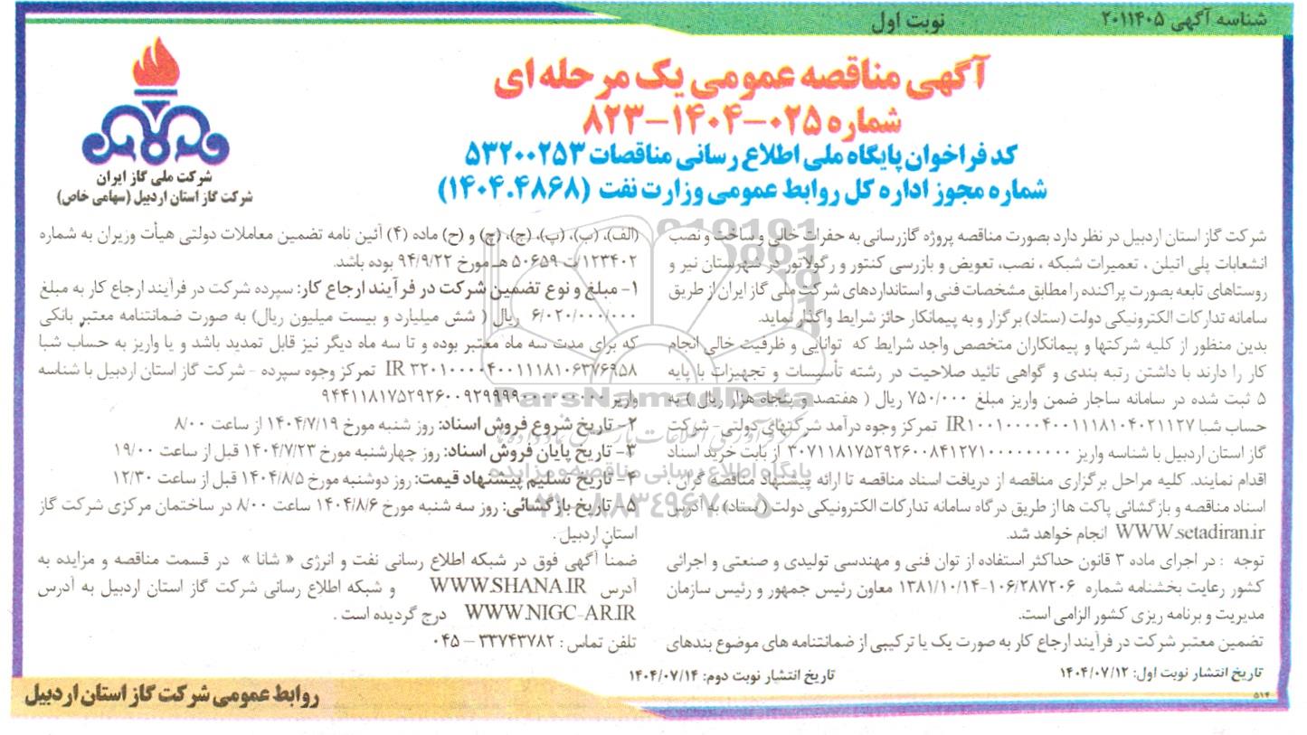 کد فراخوان پایگاه ملی اطلاع رسانی مناقصات 53200253 شماره مجوز اداره کل روابط عمومی وزارت نفت (1404.4868)