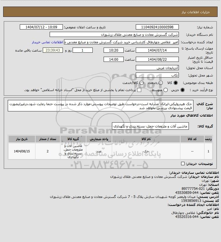 نام دستگاه خریدار:شرکت گسترش معادن و صنایع معدنی طلای زرشوران