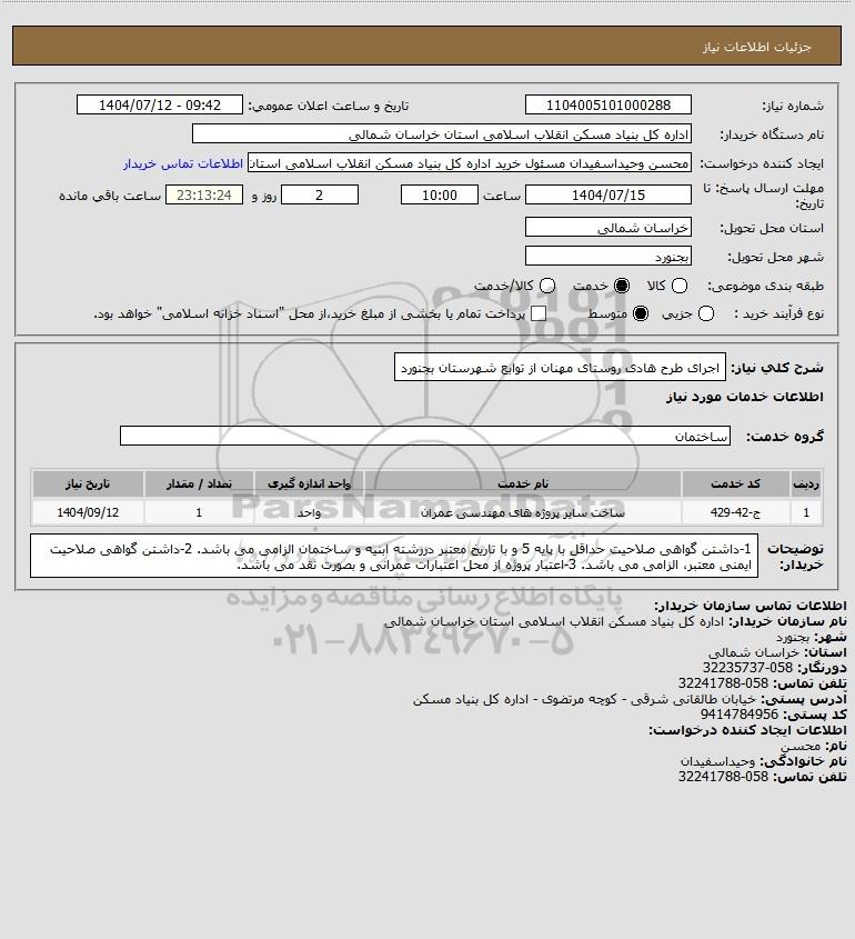 نام دستگاه خریدار:اداره کل بنیاد مسکن انقلاب اسلامی استان خراسان شمالی