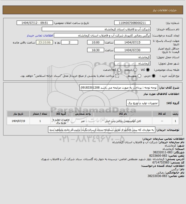 نام دستگاه خریدار:شرکت آب و فاضلاب استان کرمانشاه