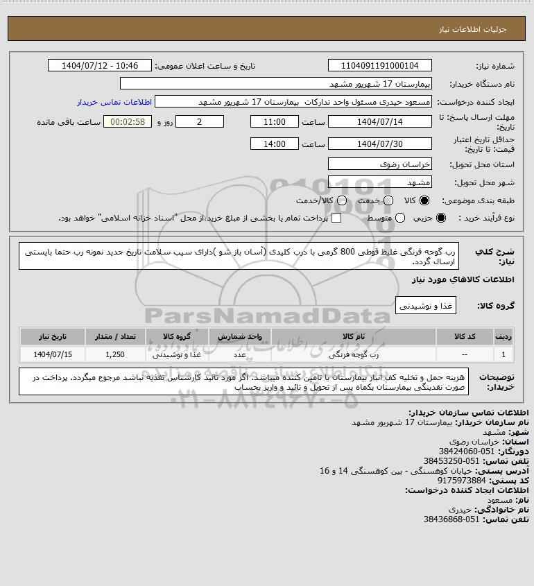 نام دستگاه خریدار:بیمارستان 17 شهریور مشهد