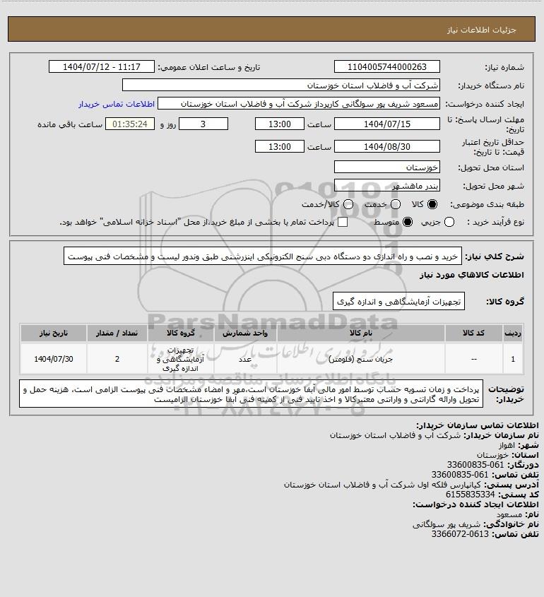 نام دستگاه خریدار:شرکت آب و فاضلاب استان خوزستان