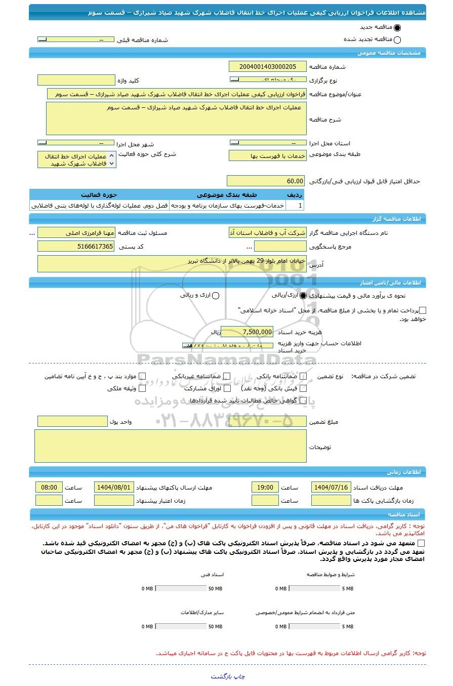 برای شرکت در مناقصه حتما از تصویر آگهی در سایت پارس نماد داده ها استفاده نمایید