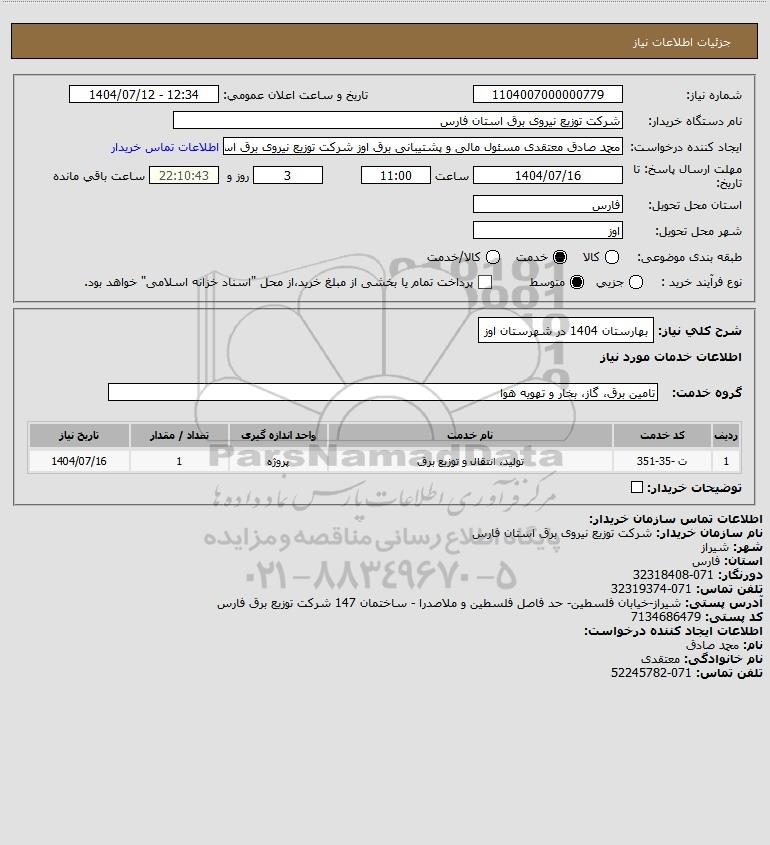 شرح کلی نیاز: بهارستان 1404 در شهرستان اوز