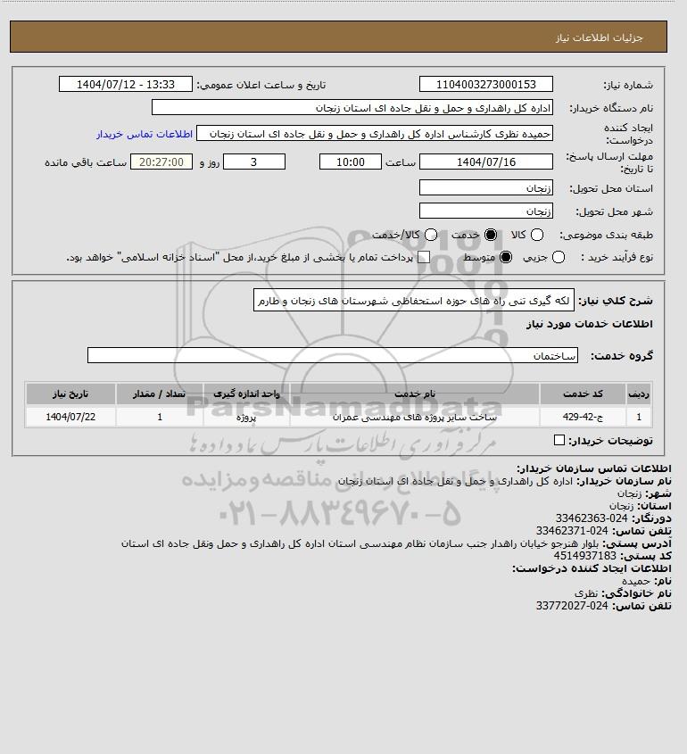 نام دستگاه خریدار:اداره کل راهداری و حمل و نقل جاده ای استان زنجان