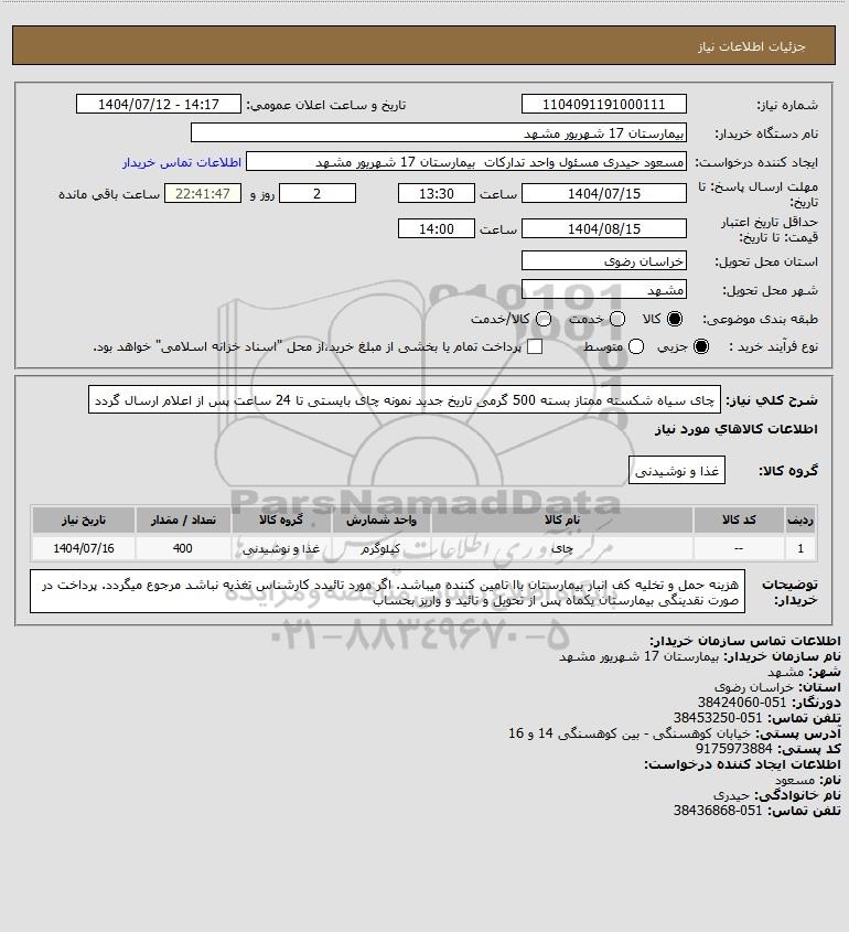 1 -- چای کیلوگرم غذا و نوشیدنی 400 1404/07/16
