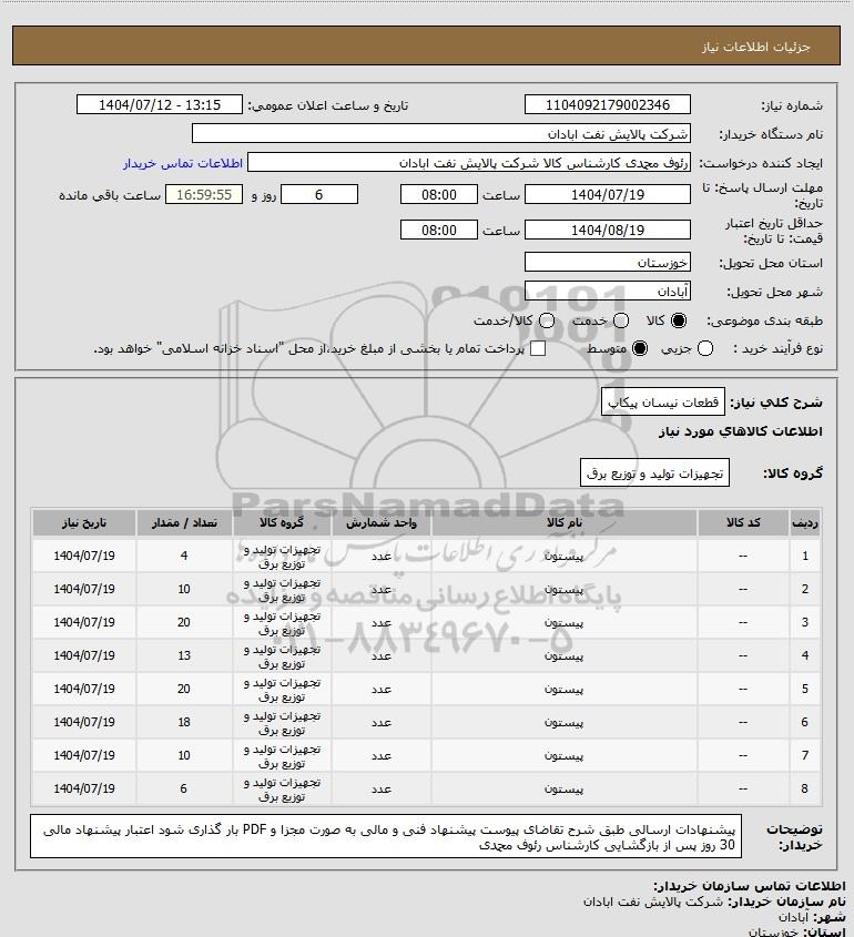| 7 | -- | پیستون | عدد | تجهیزات تولید و توزیع برق | 10 | 1404/07/19 |