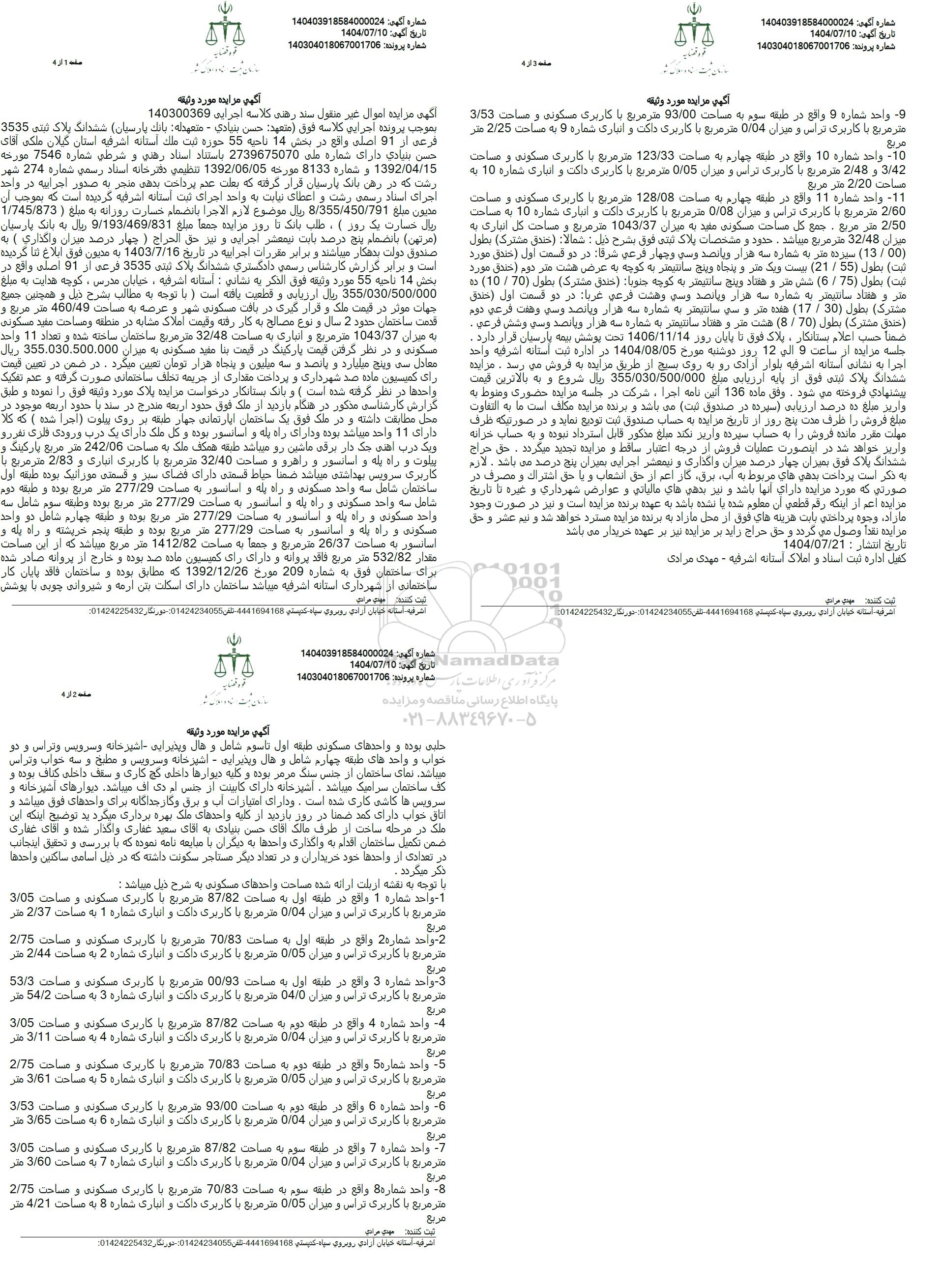 مزایده ششدانگ پلاک ثبتی 3535 فرعی از 91 اصلی