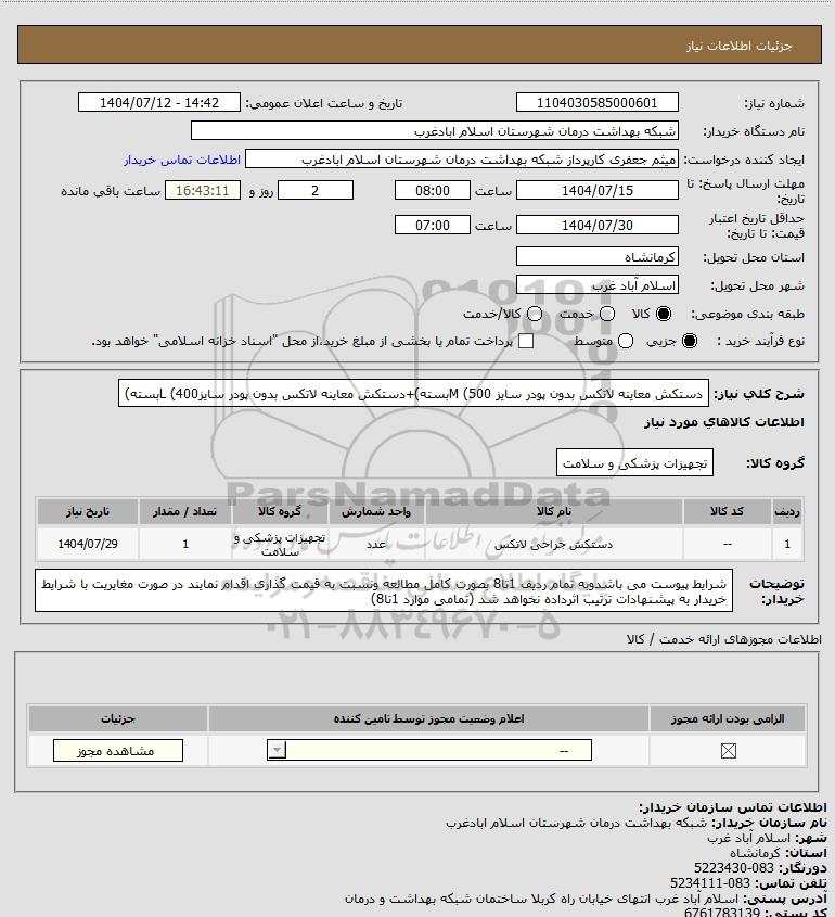 نام دستگاه خریدار:شبکه بهداشت درمان شهرستان اسلام ابادغرب