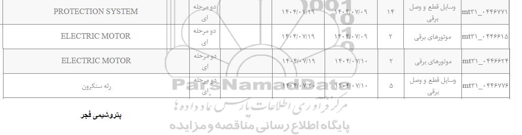 M31- 0446771 وسایل قطع و وصل برقی 14 1404.7.19 دو مرحله ای PROTECTION SYSTEM