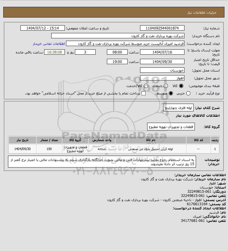 نام دستگاه خریدار:شرکت بهره برداری نفت و گاز کارون