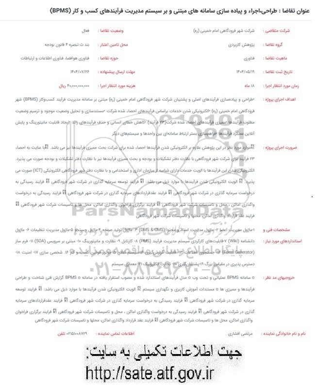 فراخوان طراحی، اجراء و پیاده سازی سامانه های مبتنی و بر سیستم مدیریت فرآیندهای کسب و کار (BPMS), فراخوان طراحی، اجراء و پیاده سازی سامانه های مبتنی و بر سیستم مدیریت فرآیندهای کسب و کار (BPMS)