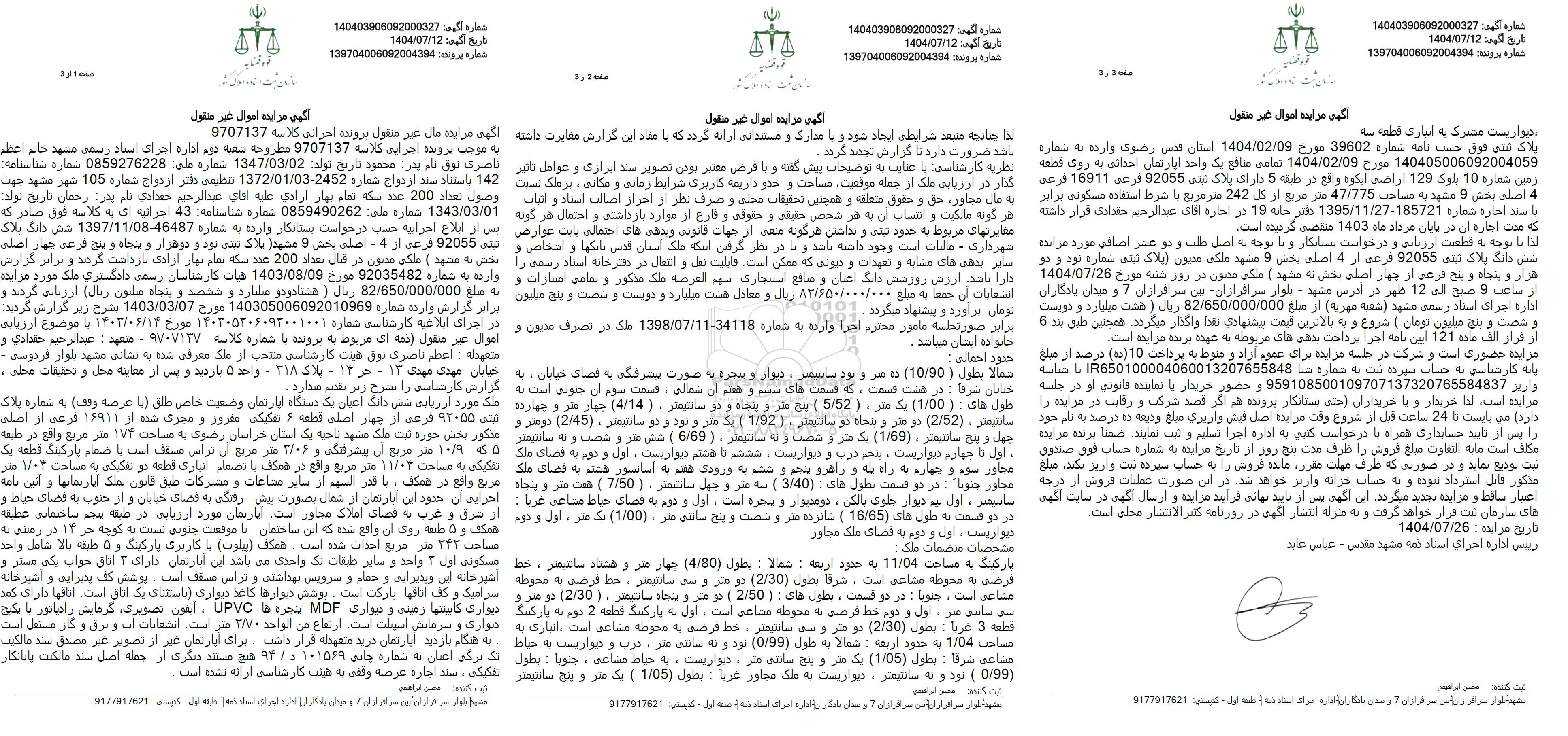 اگهی مزایده مال غیر منقول پرونده اجرائی کلاسه 9707137