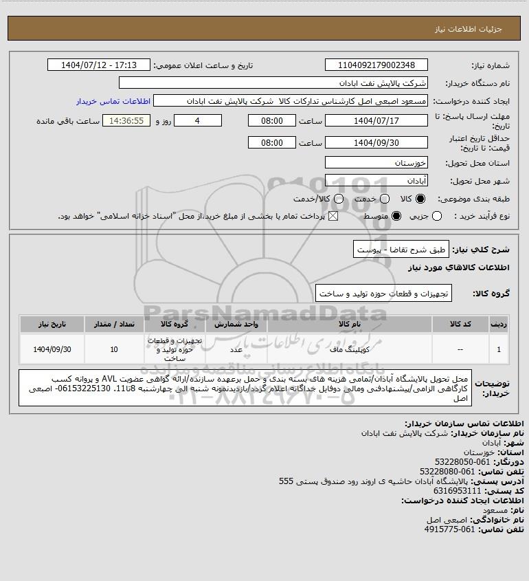نام دستگاه خریدار:شرکت پالایش نفت ابادان