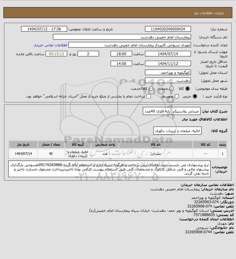 | 1 | -- | صندلی | عدد | اثاثیه، مبلمان و تزیینات دکوری | 40 | 1404/07/14 |