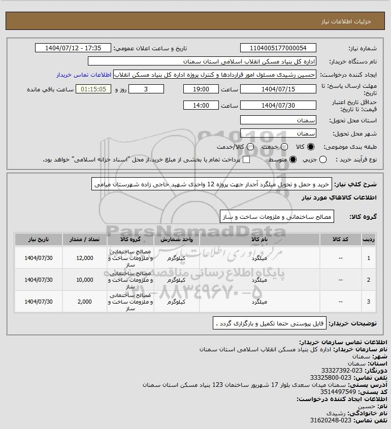 استعلام خرید و حمل و تحویل میلگرد آجدار جهت پروژه 12 واحدی شهید حاجی زاده شهرستان میامی, استعلام خرید و حمل و تحویل میلگرد آجدار جهت پروژه 12 واحدی شهید حاجی زاده شهرستان میامی