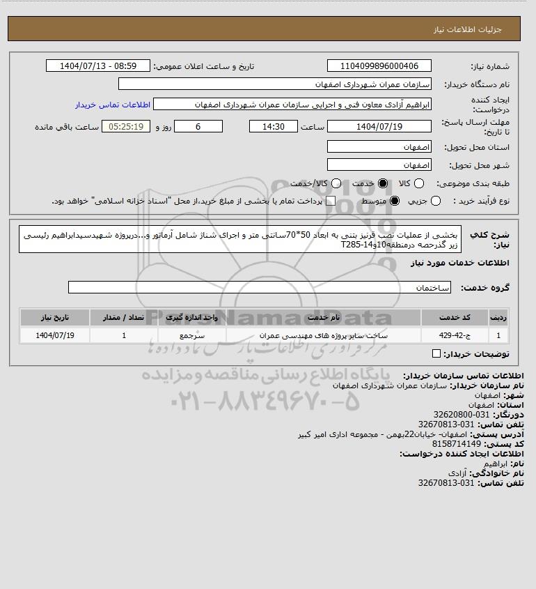 نام دستگاه خریدار:سازمان عمران شهرداری اصفهان