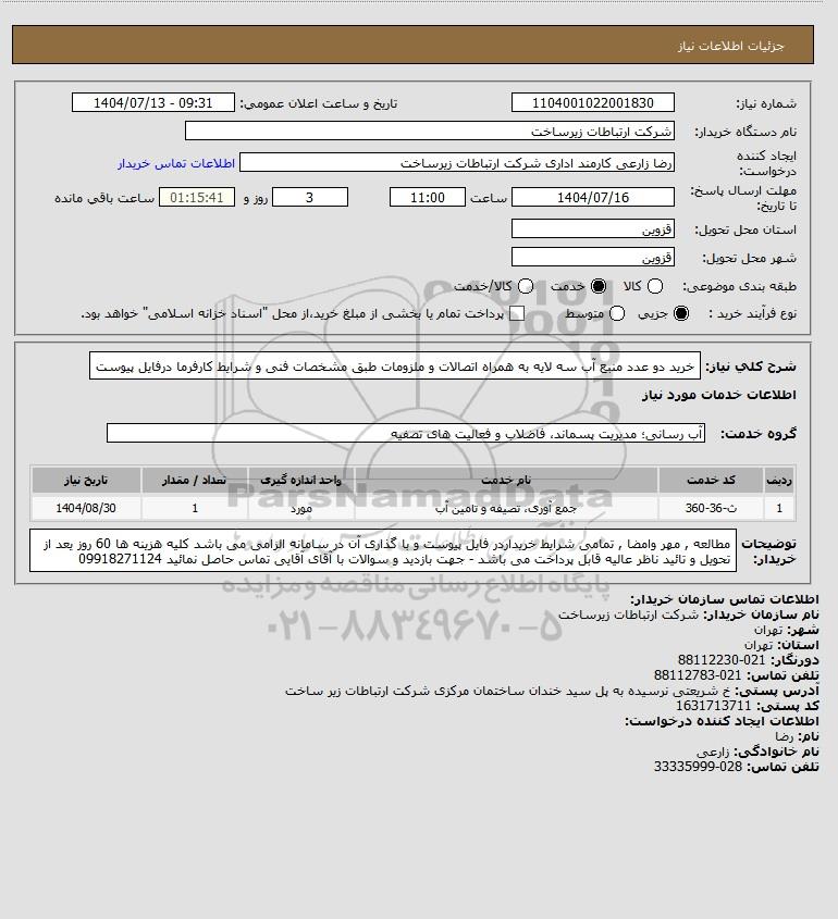 نام دستگاه خریدار:شرکت ارتباطات زیرساخت