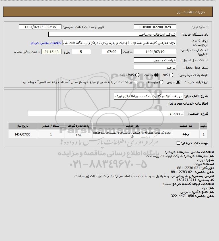 شرح کلی نیاز: بهینه سازی و گابیون بندی مسیرهای فیبر نوری