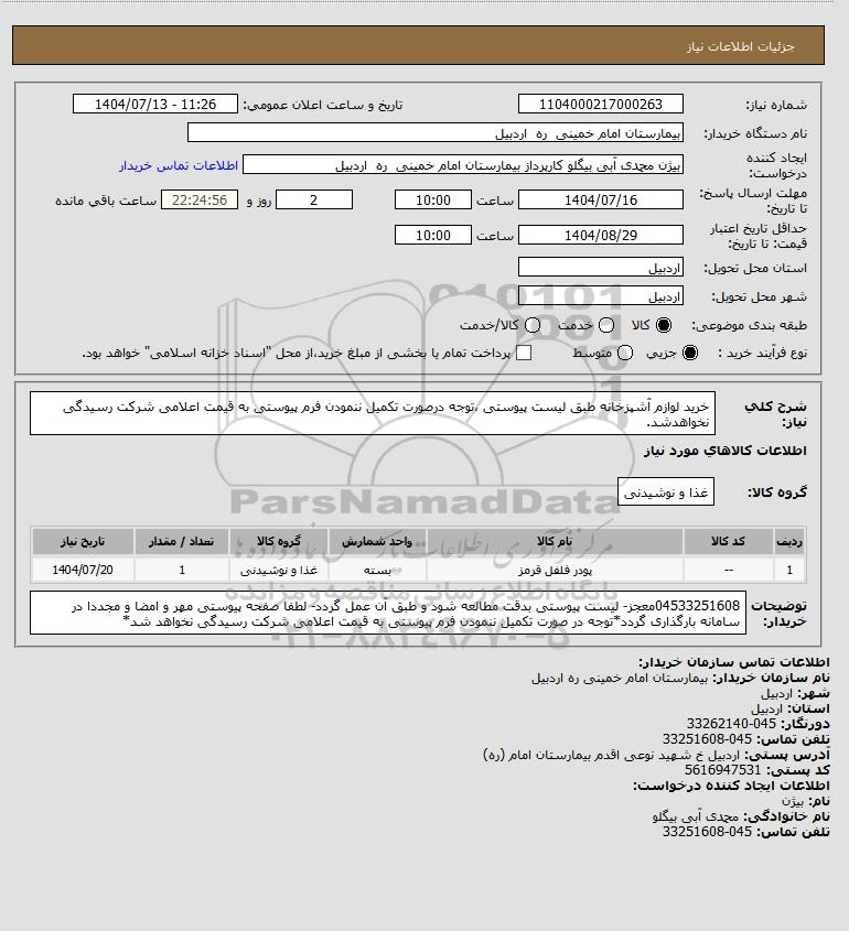 نام دستگاه خریدار:بیمارستان امام خمینی ره اردبیل