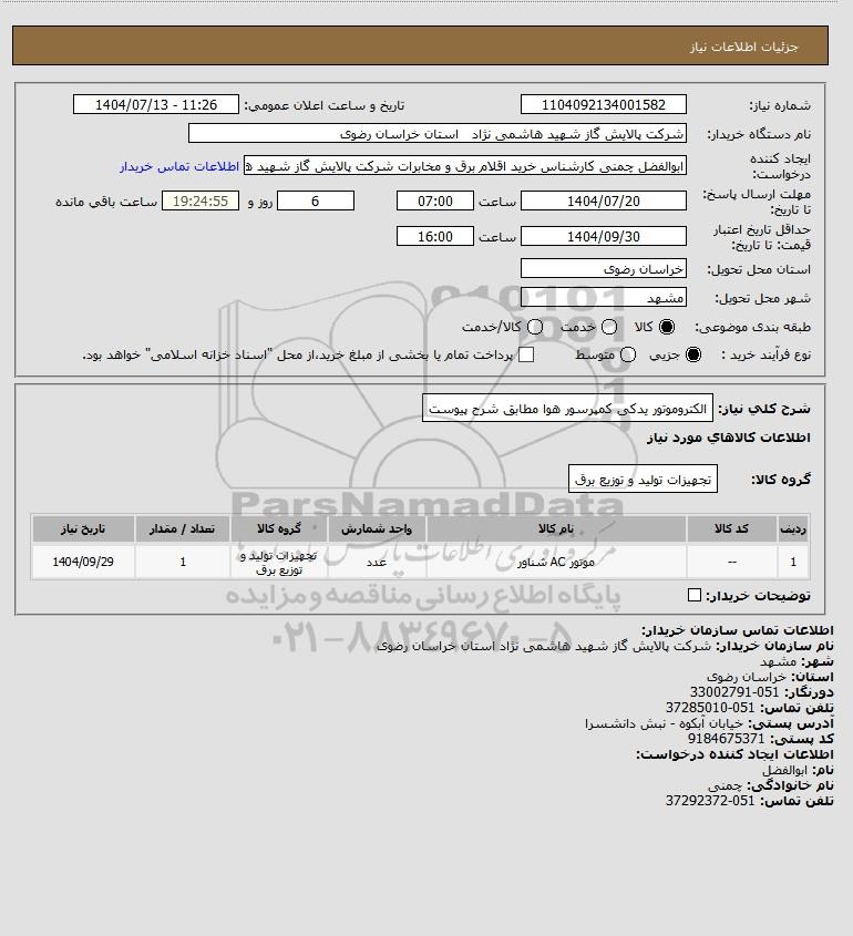 استعلام الکتروموتور یدکی کمپرسور هوا مطابق شرح پیوست, استعلام الکتروموتور یدکی کمپرسور هوا مطابق شرح پیوست