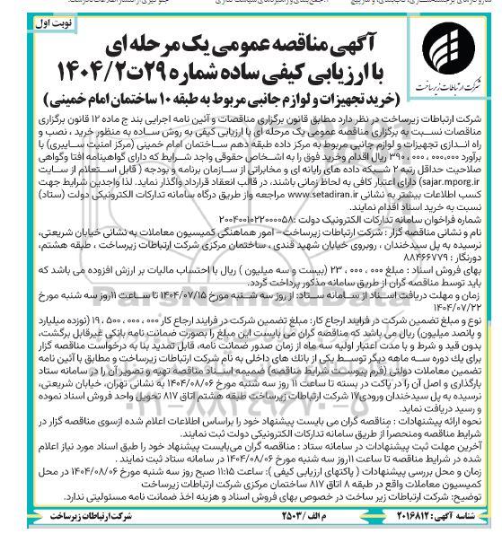 شماره فراخوان سامانه تدارکات الکترونیک دولت: 2004001022000058