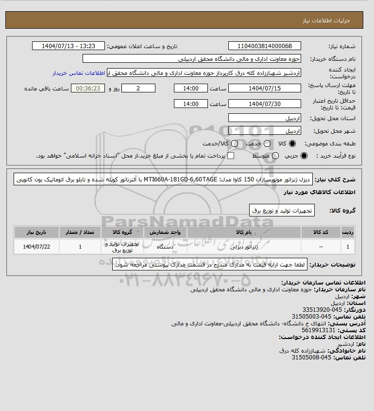 1 -- ژنراتور دیزلی دستگاه تجهیزات تولید و توزیع برق 1 1404/07/22