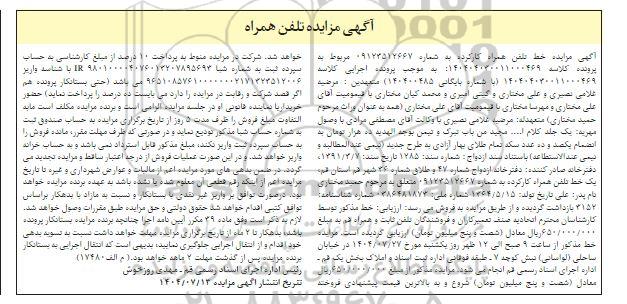 آگهی مزایده تلفن همراه