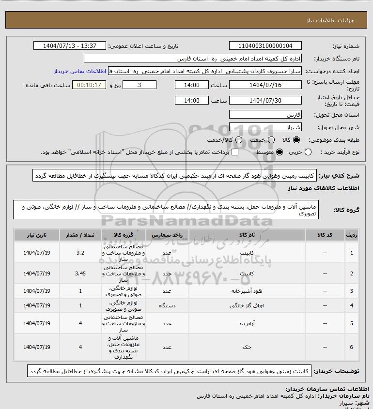 نام دستگاه خریدار:اداره کل کمیته امداد امام خمینی ره استان فارس